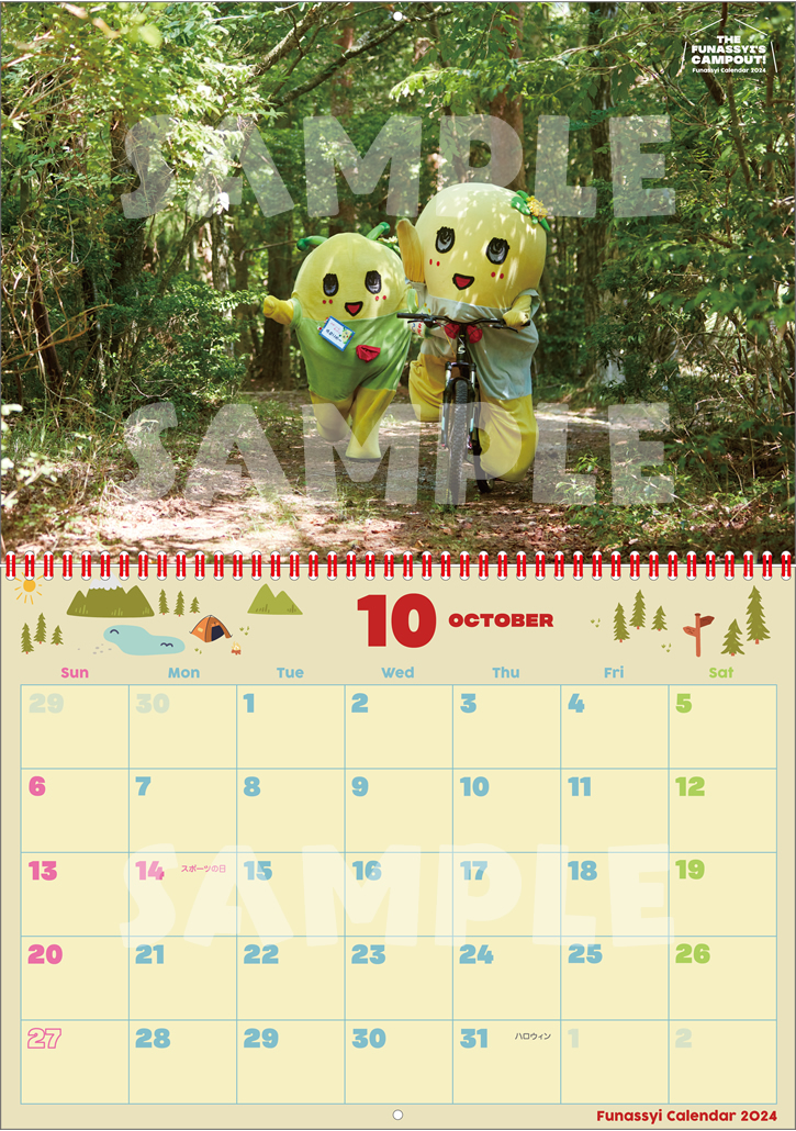 ふなっしー壁掛カレンダー2024_4月 ふなっしー壁掛カレンダー2024_9月 ふなっしー壁掛カレンダー2024_10月